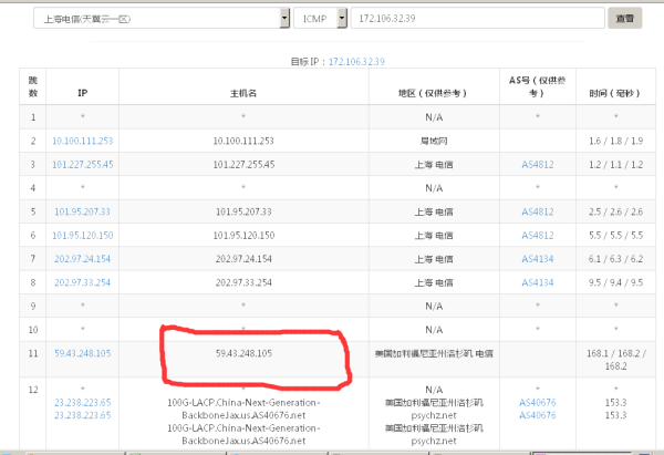可以看到路由经过了ip :59.43.248.105 ,前面说过凡是经过59.43.x.x的路由都是电信CN2