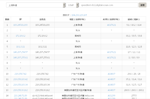 上海联通用户到美国旧金山机房居然要绕广州!明明可以直连,延迟都快300ms了。